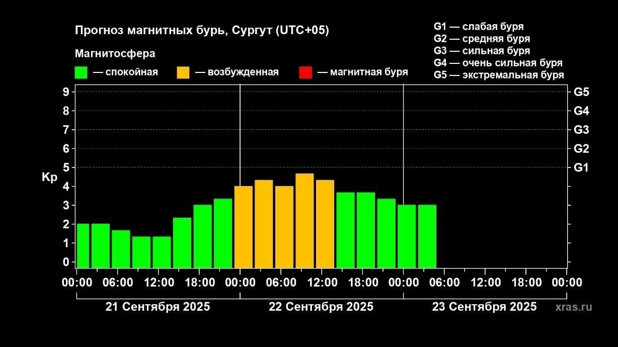 Прогноз магнитных бурь в ХМАО на 21 сентября