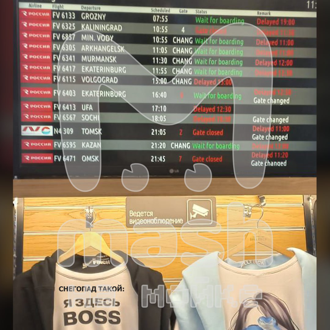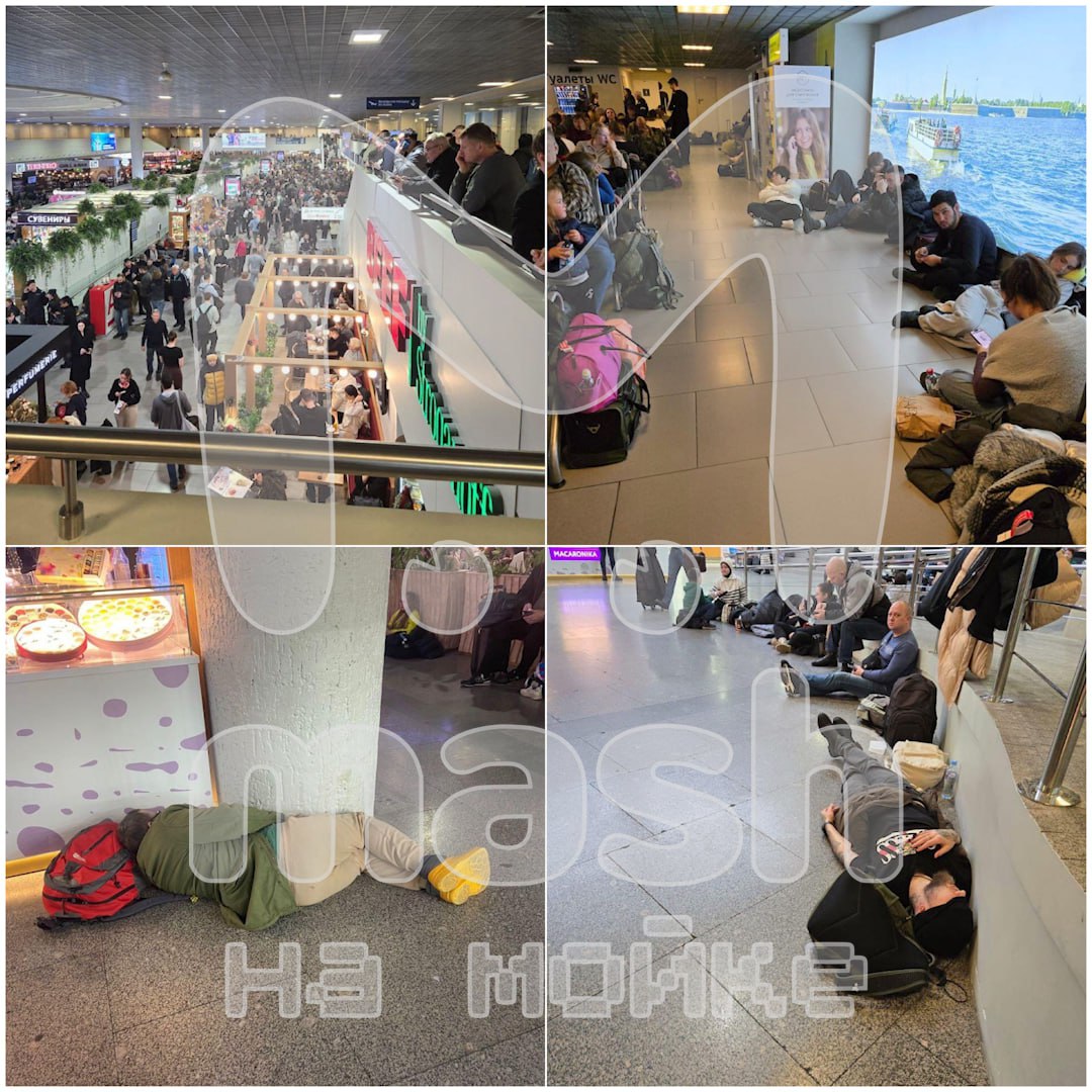 Судя по онлайн-табло, самолётов-опоздунов несколько десятков: в Нижний, Мурманск, Уфу, Стамбул, Сочи и так далее. Несколько рейсов в Москву отменили. С прилётами — аналогичная ситуация. Наши подписчики из Волгограда пытаются вернуться в СПб со вчерашнего дня.