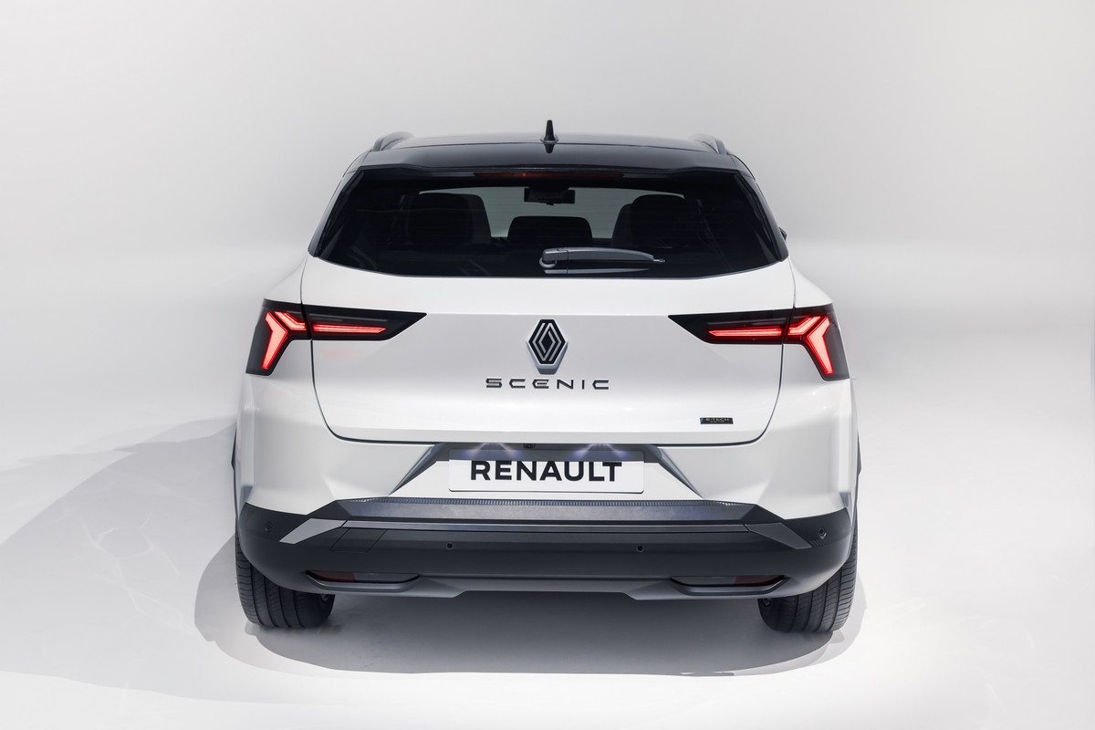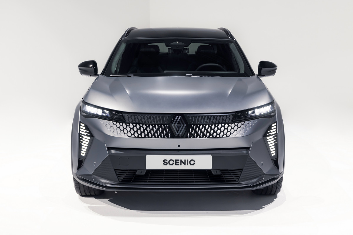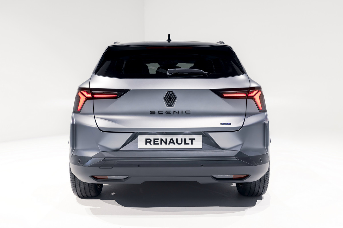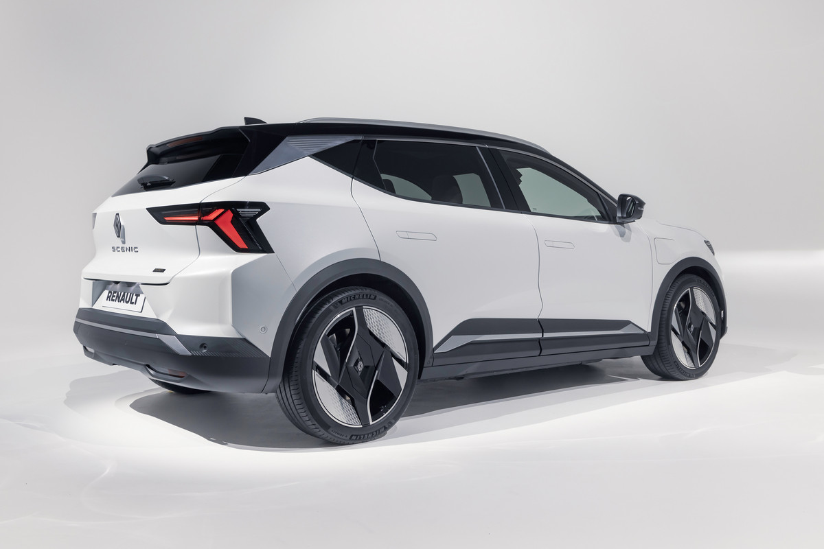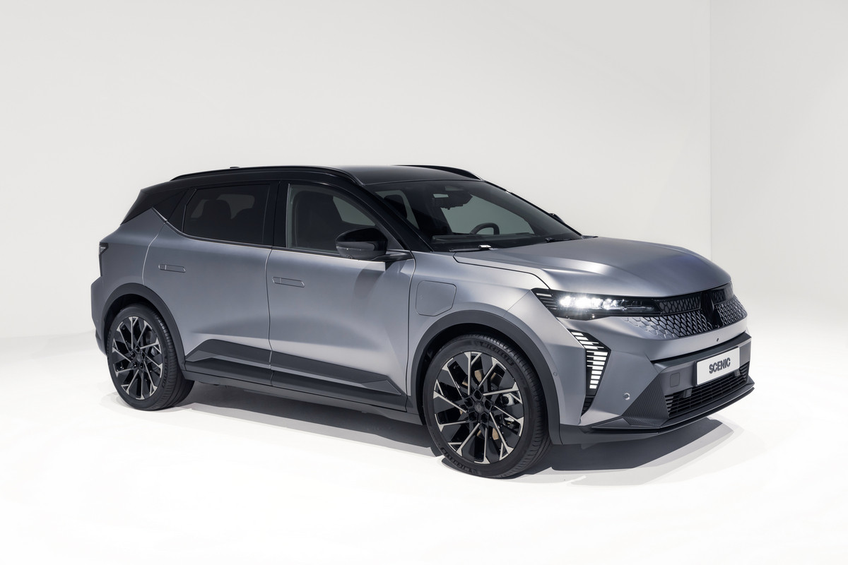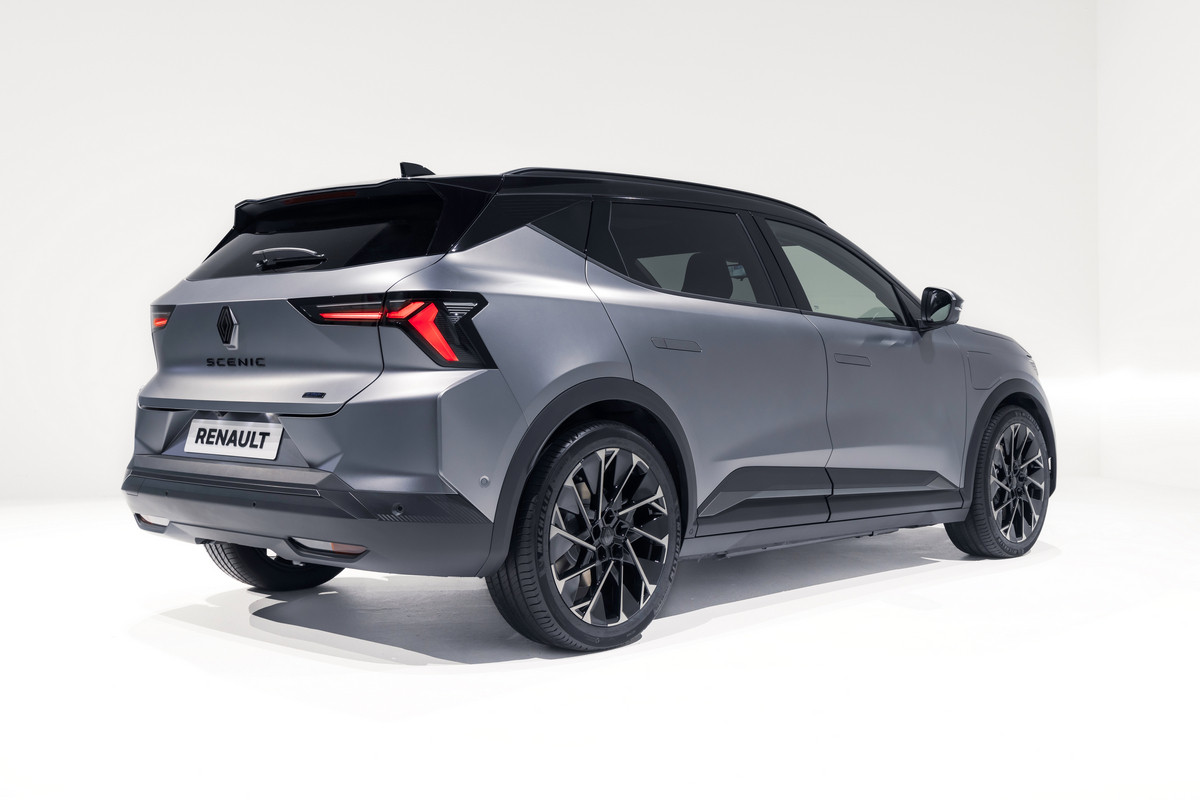 Внешне товарный кросс многое перенял от предвестника: в частности, с концепта перешли узкие светодиодные фары и «бумеранги» ходовых огней, вогнутая заглушка с «мозаикой» на месте радиаторной решетки. Впрочем, мишуру, присущую шоу-карам, все же убрали. Так, вместо камер установили привычные зеркала, появились центральные стойки, а на дверях – выкидные ручки. Renault Scenic E-Tech electric положены 19- или 20-дюймовые колеса. Одновременно представлена версия Esprit Alpine со «спортивным духом», ее фишки – серая матовая окраска, 20-дюймовые колеса оригинального дизайна и эмблема с названием комплектации на передних крыльях.