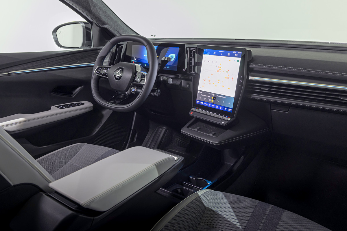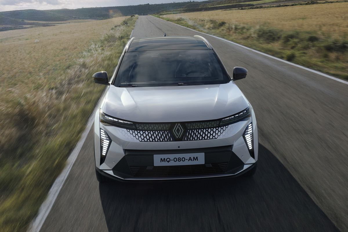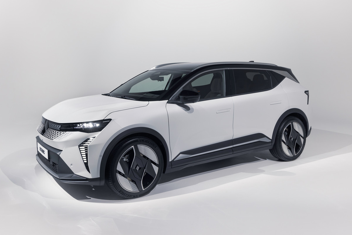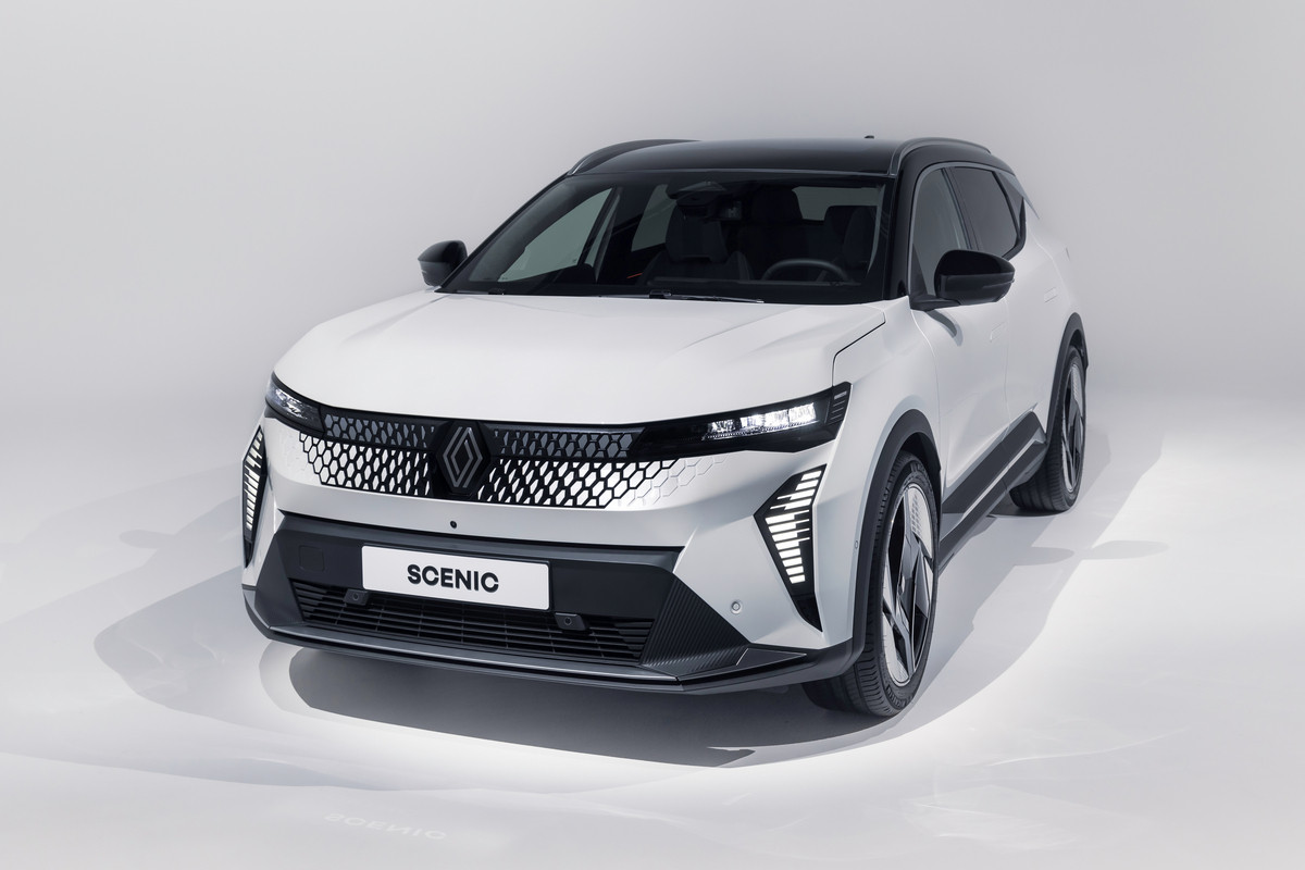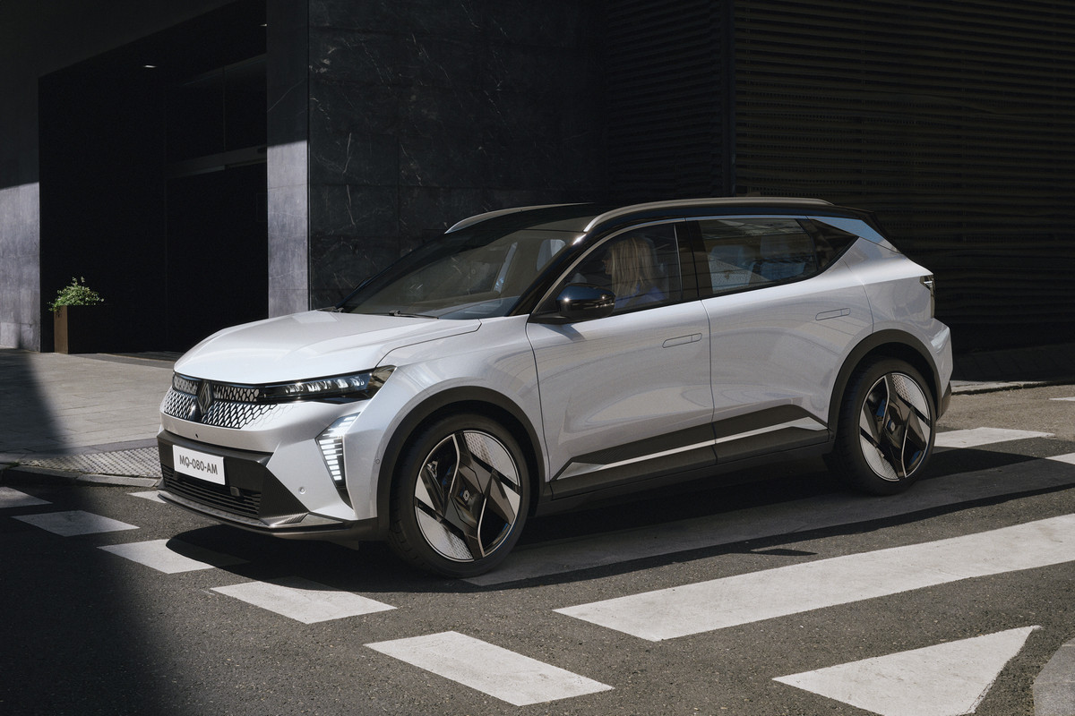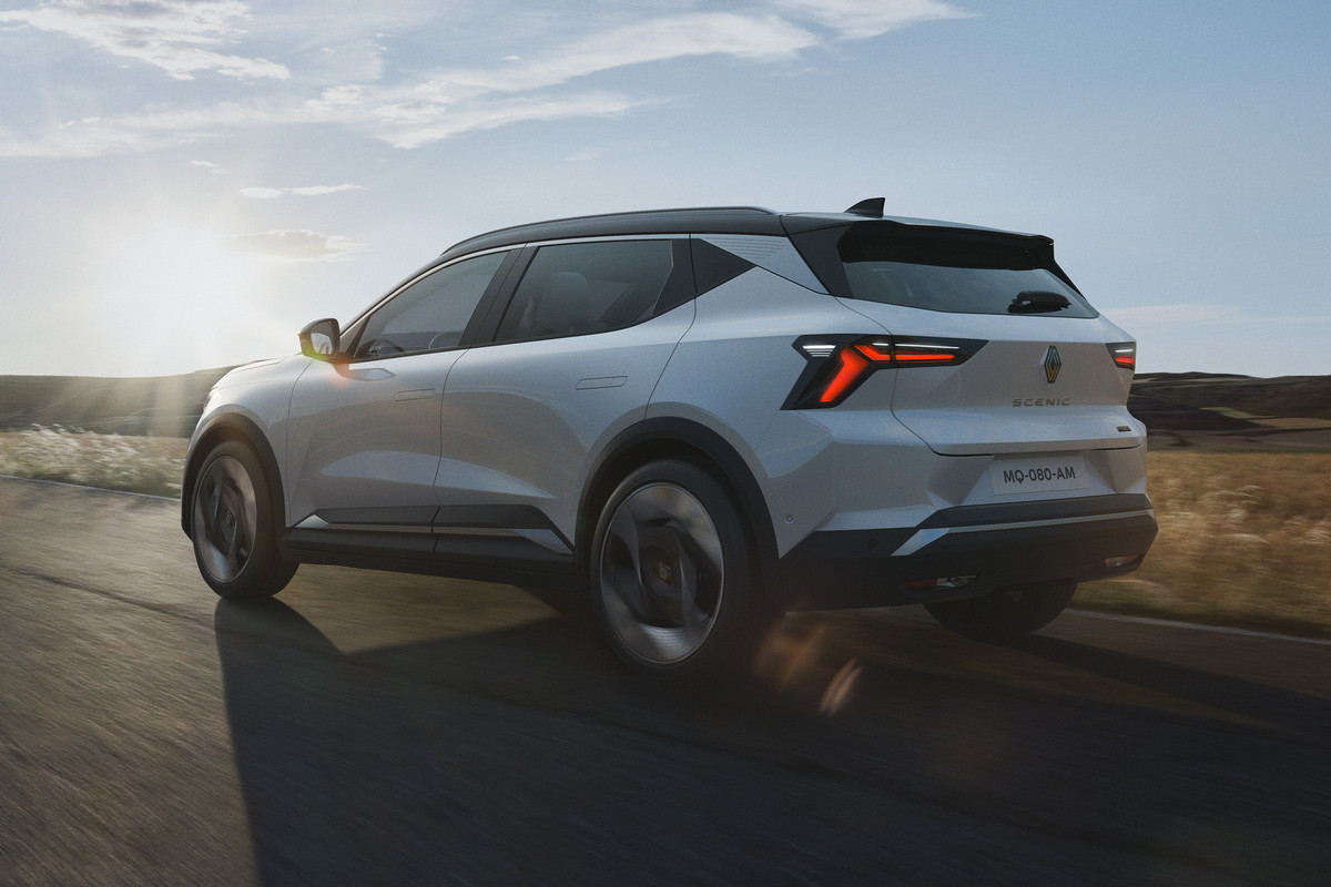Внешне товарный кросс многое перенял от предвестника: в частности, с концепта перешли узкие светодиодные фары и «бумеранги» ходовых огней, вогнутая заглушка с «мозаикой» на месте радиаторной решетки. Впрочем, мишуру, присущую шоу-карам, все же убрали. Так, вместо камер установили привычные зеркала, появились центральные стойки, а на дверях – выкидные ручки. Renault Scenic E-Tech electric положены 19- или 20-дюймовые колеса. Одновременно представлена версия Esprit Alpine со «спортивным духом», ее фишки – серая матовая окраска, 20-дюймовые колеса оригинального дизайна и эмблема с названием комплектации на передних крыльях.