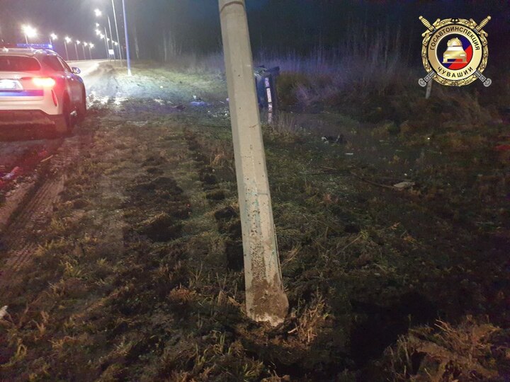 Ночь, дорога, алкоголь: в Чувашии ВАЗ ударил столб — водитель пьян и без прав
