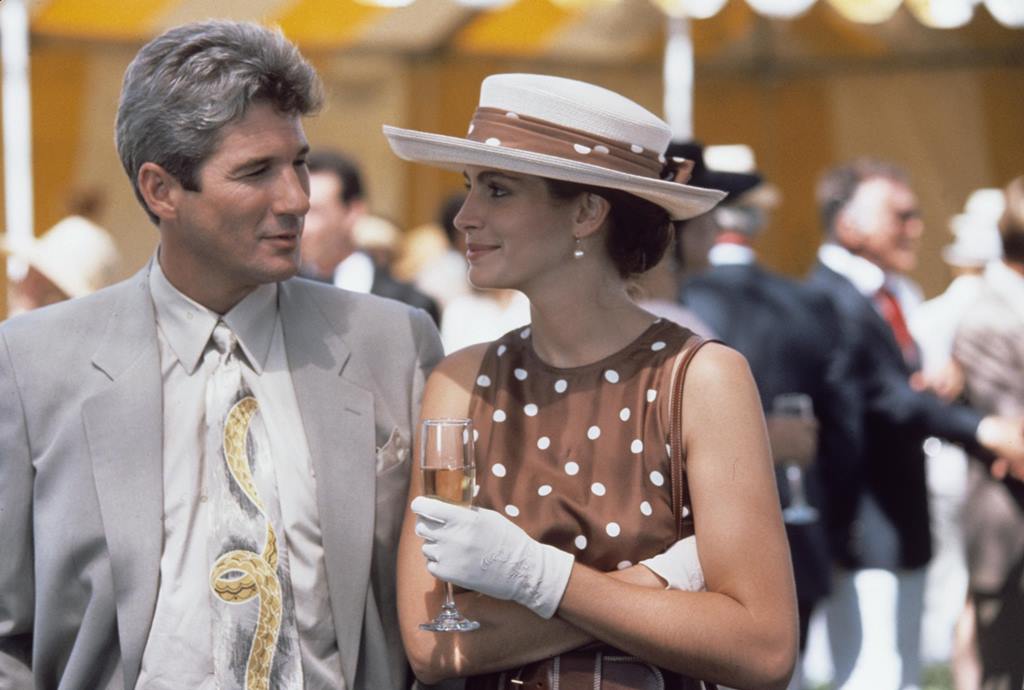 Знаменитая «Красотка» с Джулией Робертс и Ричардом Гиром многим запомнилась необычными нарядами главной героини, среди которых выделяются изящное коричневое платье в белый горошек и роскошное красное с открытыми плечами. Их создала костюмер Мэрилин Вэнс. А вот элегантный гардероб героя Ричарда Гира практически полностью был создан итальянским дизайнером Нино Черрути.