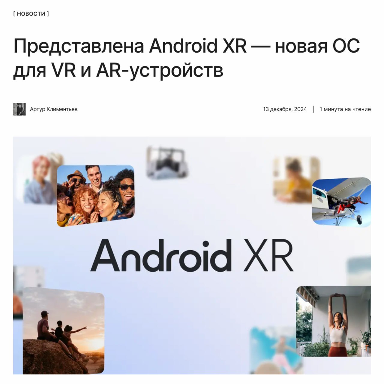 Google представила новую операционную систему Android XR, которая будет использоваться в шлемах виртуальной реальности и умных очках. Первое устройство на базе новой ОС ожидается уже в 2025 году.
