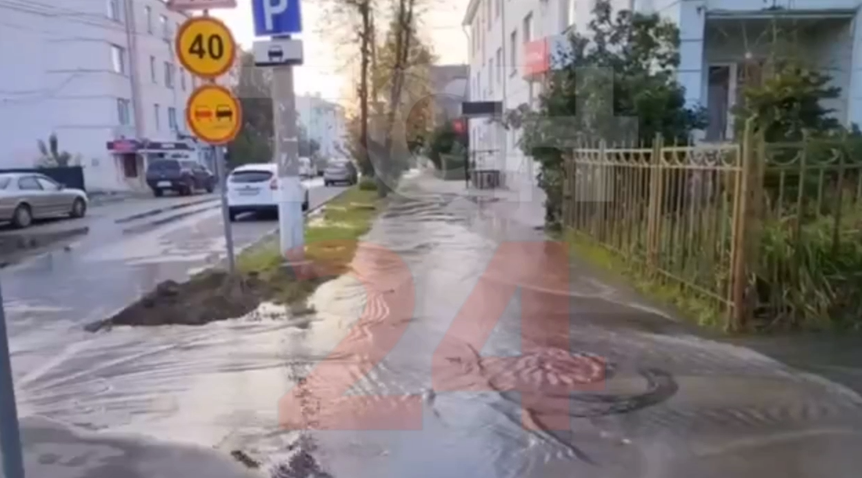 Прорыв водопровода на улице Фридриха Энгельса в Туле оставил без воды 14 домов