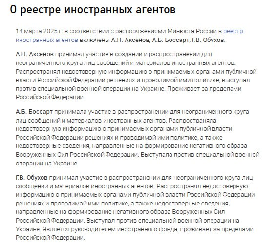 Минюст внес в реестр иноагентов писательницу Аллу Боссарт и политолога Германа Обухова
