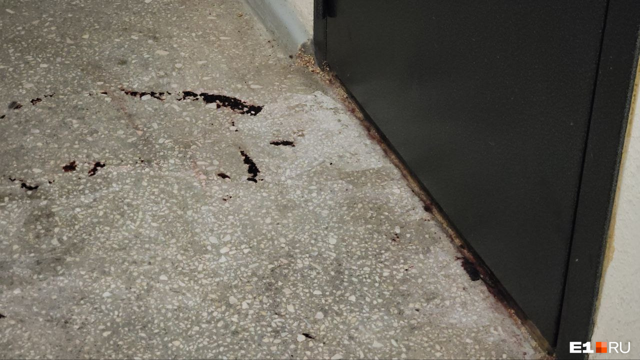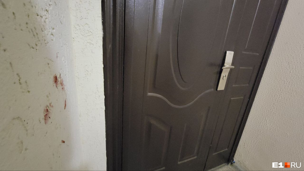 В подъезде перед дверью до сих пор — следы крови. Когда всё закончилось, соседи засыпали ее опилками. Спустя сутки о событии напоминают пятна на стене и кровь, застывшая на пороге квартиры.