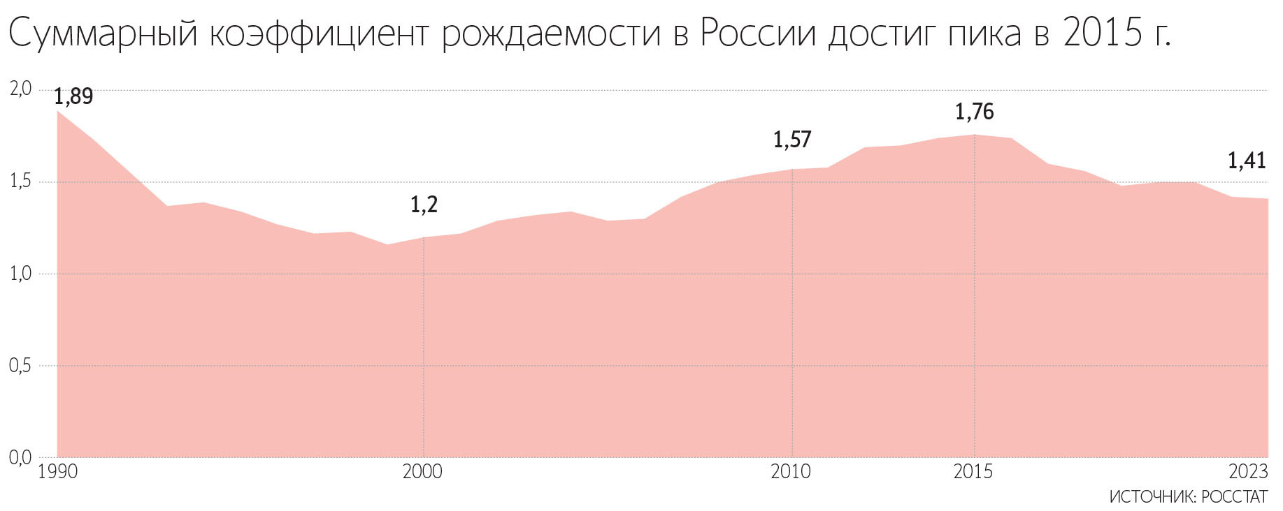 Те, кто родился в начале 2000-х, сейчас только входят в детородный возраст. И это еще не значит, что они сразу начнут заводить детей: они будут учиться, затем строить карьеру, путешествовать, а потом уже задумываться о ребенке, говорит заведующая научной лабораторией «Количественные методы исследования регионального развития» в РЭУ им. Плеханова Елена Егорова. «У нас пока просто нет женского поколения для хорошего повышения рождаемости», – отмечает эксперт. По итогам 2023 г. суммарный коэффициент рождаемости составил 1,41 – это самый низкий показатель за последние 17 лет.