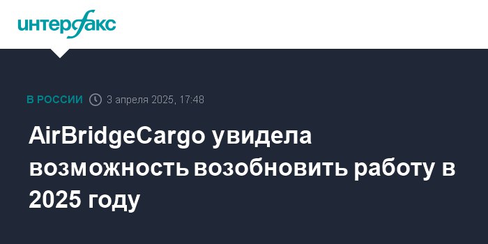 Российская грузовая авиакомпания AirBridgeCargo «увидела возможность возобновить работу в 2025 году с учетом геополитической ситуации», пишет Интерфакс.