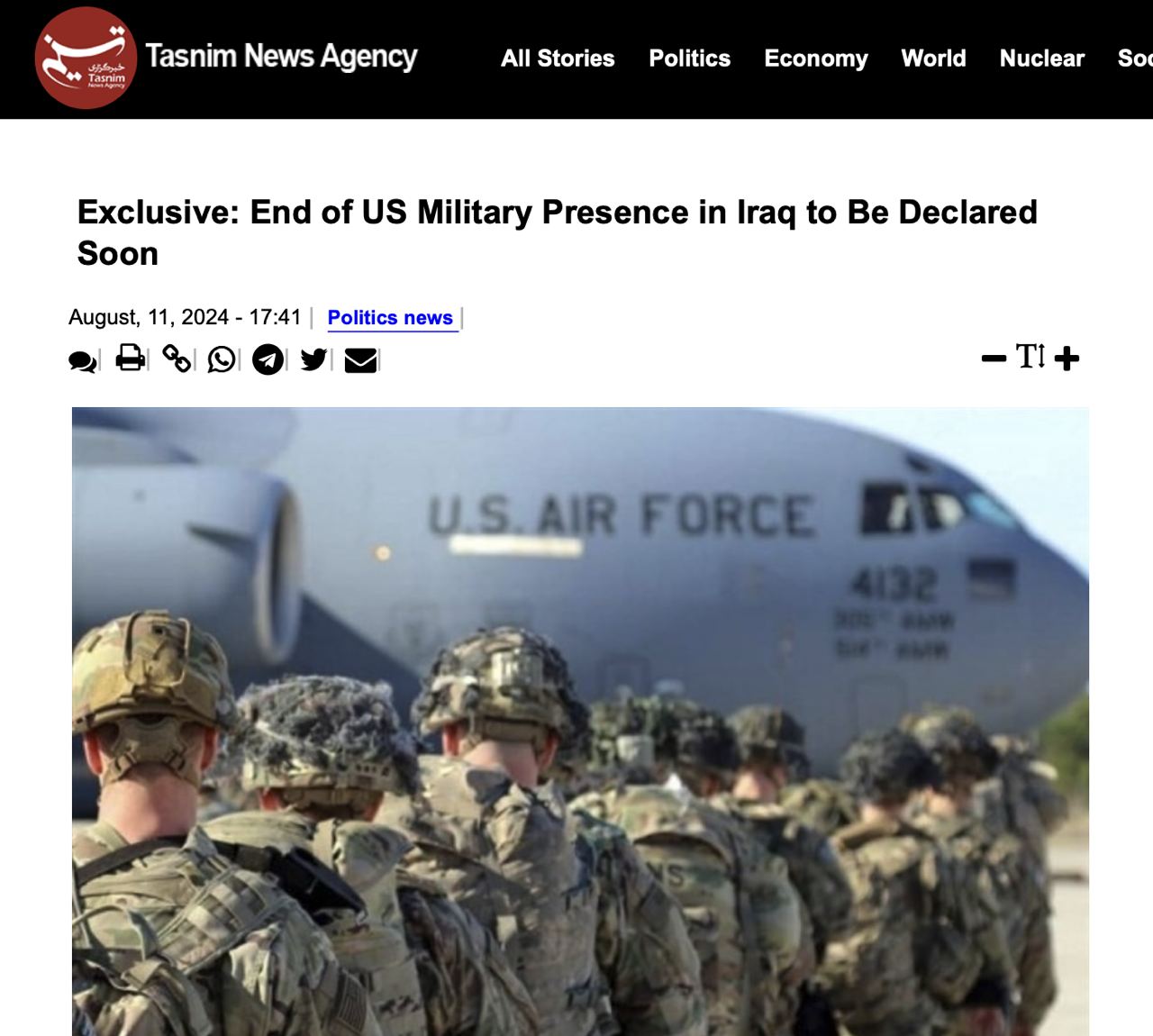В материале утверждается, что вывод сил международной военной коалиции из Ирака, за исключением региона Иракский Курдистан, начнётся в сентябре 2025 года.