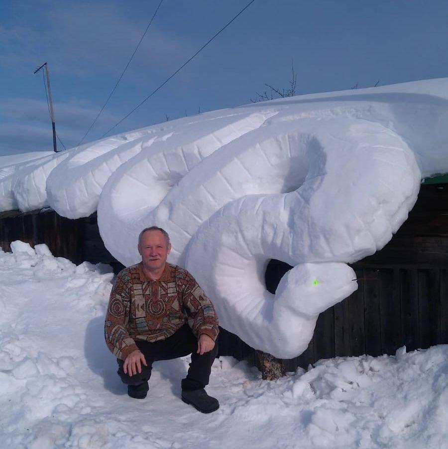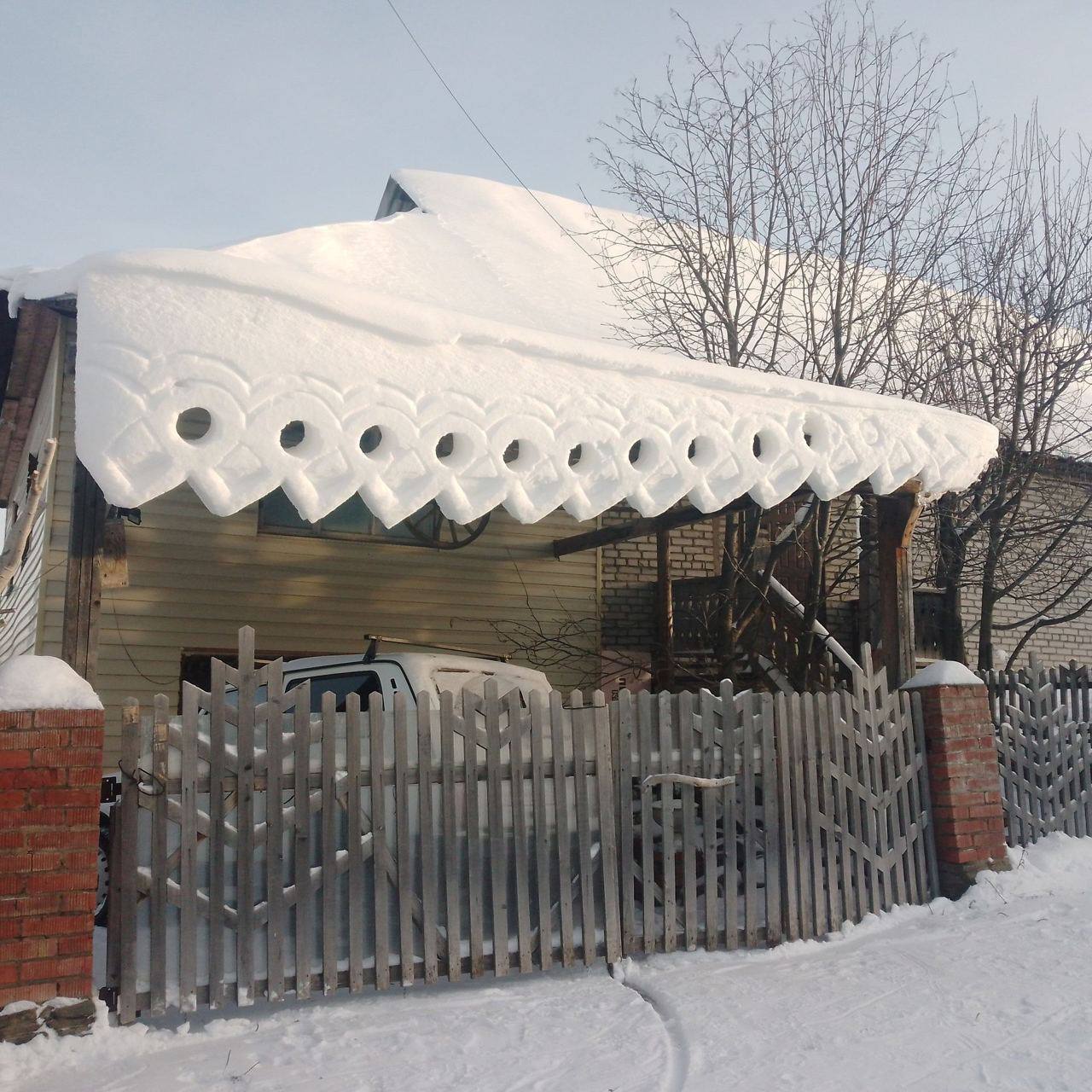 Змея, узоры и орёл: житель Пермского края создаёт снежные скульптуры на крышах жилых домов.