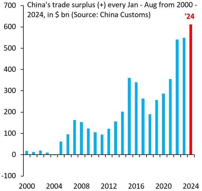 🇨🇳 Китай продолжает ставить рекорды торгового баланса. Он не только занял место европейцев на российском рынке, но и сумел перепродать Европе дорогой сжиженный газ, который брал по контрактам у США.