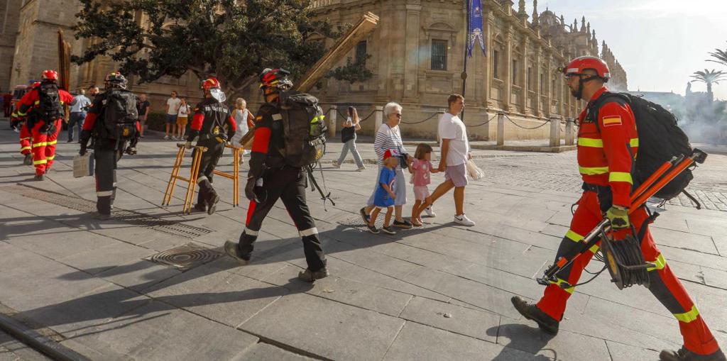 El plan de autoprotección de la Catedral sevillana cuenta con una colaboración bilateral entre esos técnicos propios de la Seo, un equipo multidisciplinar guiado por el responsable de seguridad, Manuel Campos; y la acción de cuerpos y fuerzas de seguridad del Estado, principalmente el que engloba a Protección Civil, a quienes se les hace partícipes del proceso de recogida de datos de dicho plan con la entrega de una copia digital con toda la información necesaria a conocer por este organismo con el fin de que se pueda aplicar una respuesta cuanto más eficaz, mejor, en la coordinación posterior existente y necesaria con policías y sobre todo bomberos, que son quienes pueden acudir en caso de que exista algún tipo de emergencia relativa a un incendio o a un conato del mismo, o a realizar otro tipo de intervenciones que requieran de la presencia de este último cuerpo. En la última inspección del plan de autoprotección fechada en 2023 no se apreciaron cambios significativos en este sentido.