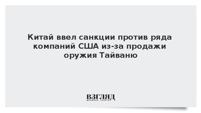 Китай ввел санкции против шести военно-промышленных компаний США из-за продажи вооружений Тайваню, передает Центральное телевидение Китая.