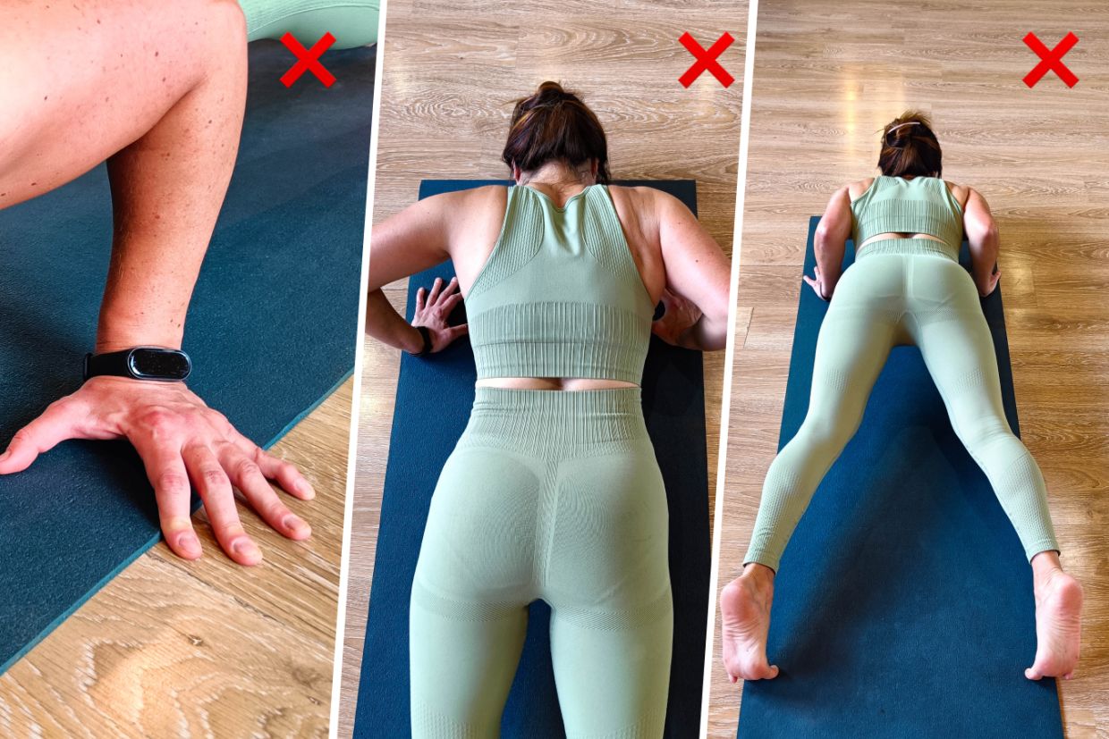 В выполнении Чатуранга Дандасаны часто допускаются ошибки, которые могут не только свести результаты к минимуму, но и навредить. Первое, на что стоит обратить внимание, опоры – руки и ноги. Избегайте заваливания ладоней наружу и разведения локтей в стороны. Также не разводите ступни в стороны. Вы должны плотно упираться в пол и равномерно распределять вес на четыре опоры.
