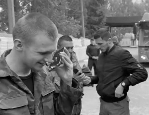 На одном из кадров молодой военнослужащий звонит своей маме: «Алло, мам, привет! Я в России». «Слава Богу, как я рада тебя слышать!» – говорит ему мама.