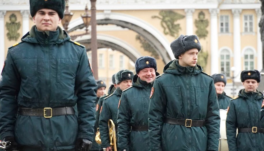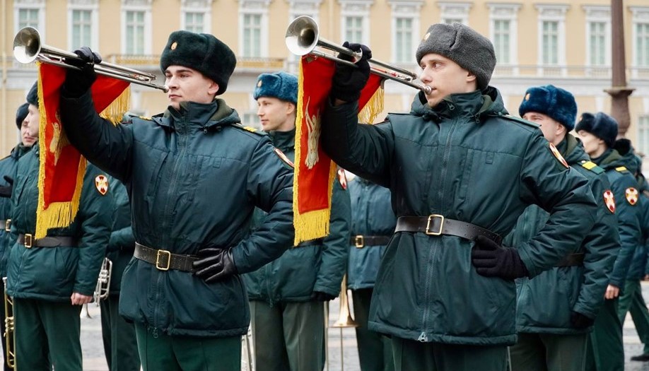 Военные музыканты провели первую тренировку свободного оркестра Санкт-Петербургского гарнизона к военному параду на День Победы. Они отработали выход на площадь, перестроение в составе подразделений, строевые приёмы при передвижении и на месте, исполнение маршей и Государственного гимна Российской Федерации.