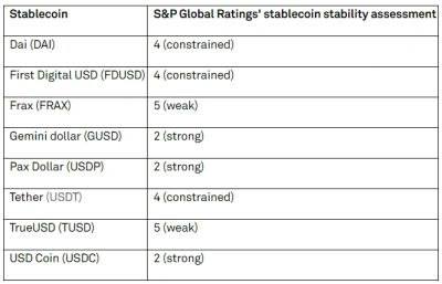 Новый показатель от S&P оценивает способность криптовалюты поддерживать стабильный курс по отношению к базовому активу. Рейтинг представляет собой шкалу от 1 (очень сильная оценка) до 5 (слабая).