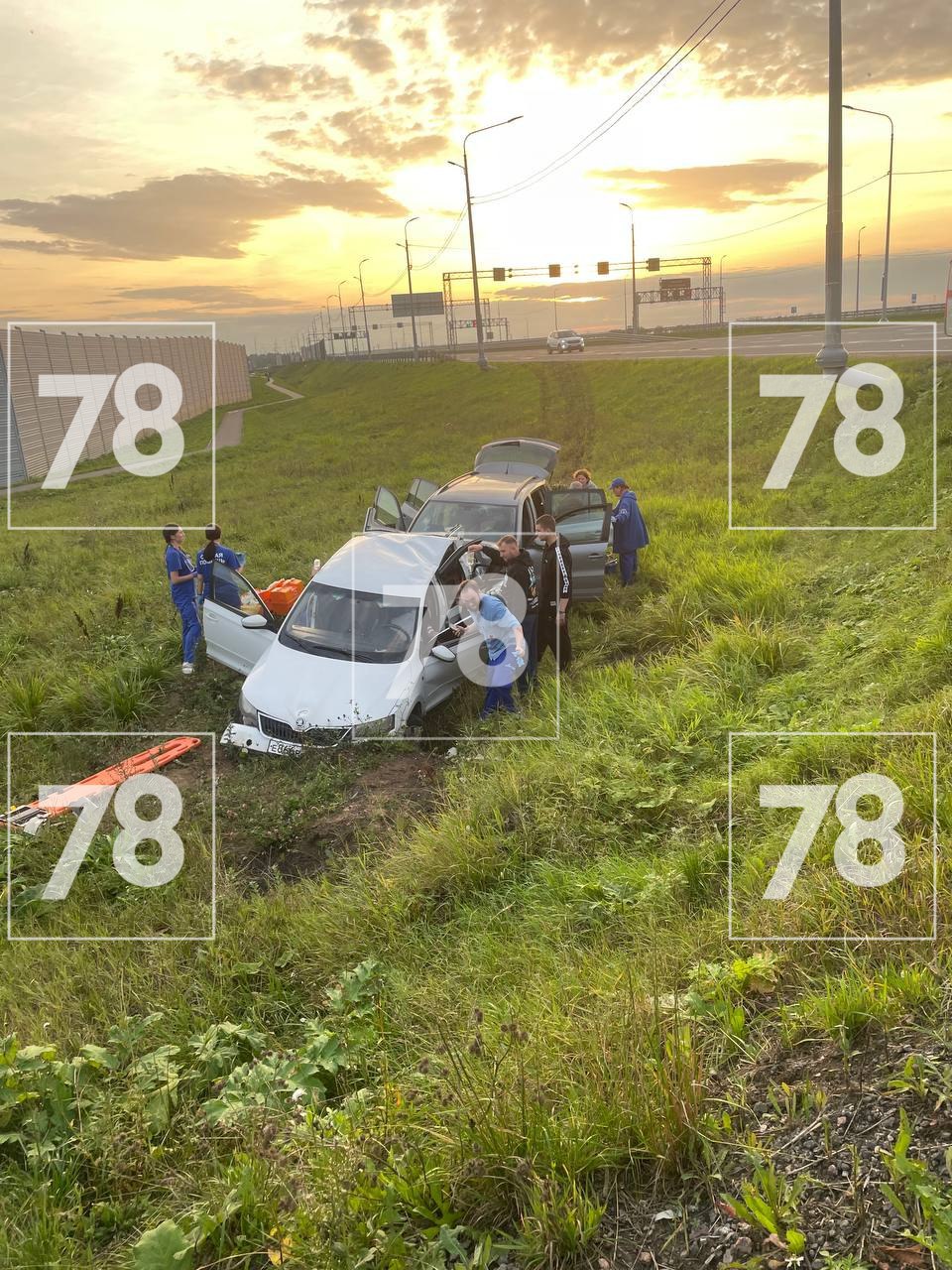 Две иномарки улетели в кювет после столкновения в Ленобласти