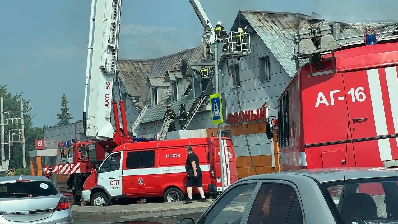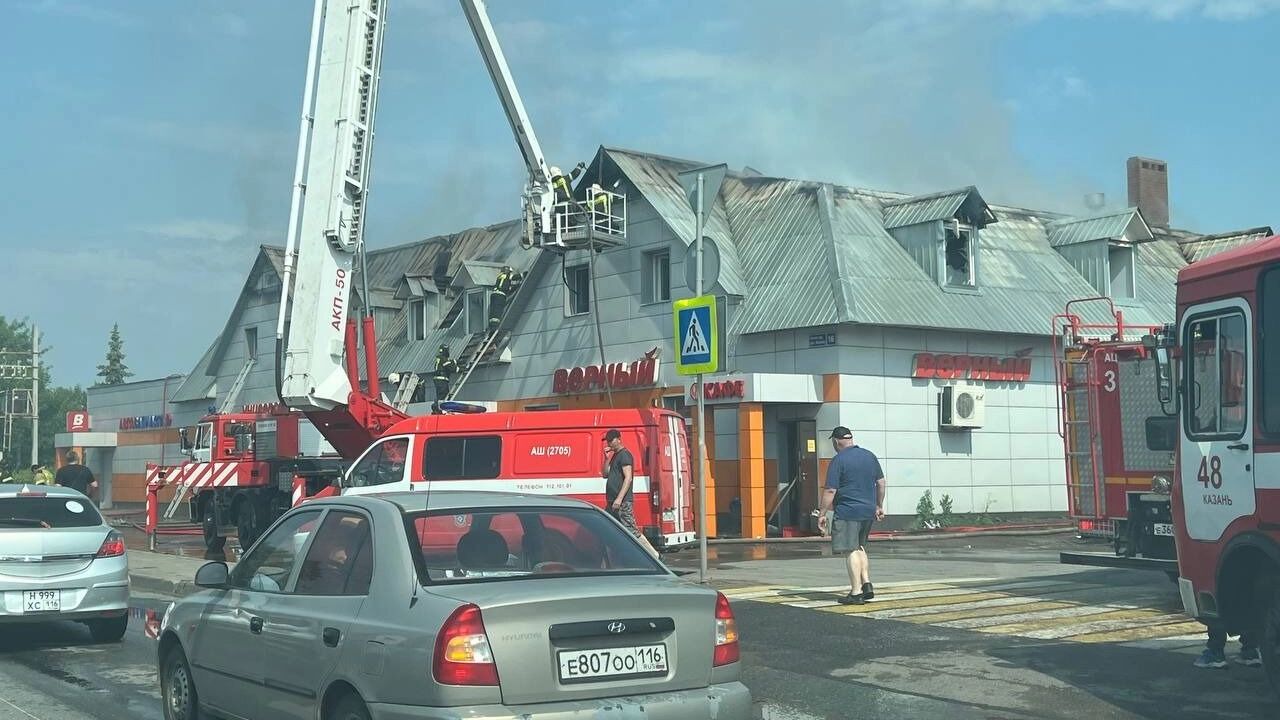 Местные жители в социальных сетях сообщают, что огонь вспыхнул в кафе, расположенном на втором этаже. По данным ГУ МЧС РФ по РТ, все произошло на улице Азина, 16. Общая площадь возгорания составила 70 квадратных метров. Что конкретно стало причиной пожара не сообщается.