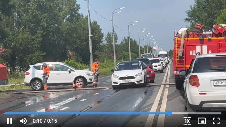 По всей дороге от поселка Киндери до Дербышек образовалась многокилометровая пробка. Причиной тому гидрант, расположенный на другой стороне дороги. Водителям приходится проезжать через пожарный рукав, что создает затор.
