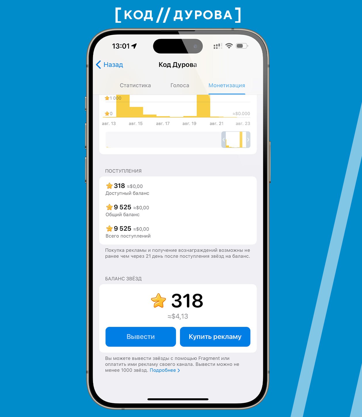 Администраторы каналов уже могут наблюдать на балансе первые звезды Telegram Stars. Напомним, звёзды становятся доступны только через 21 день с момента их получения каналом.
