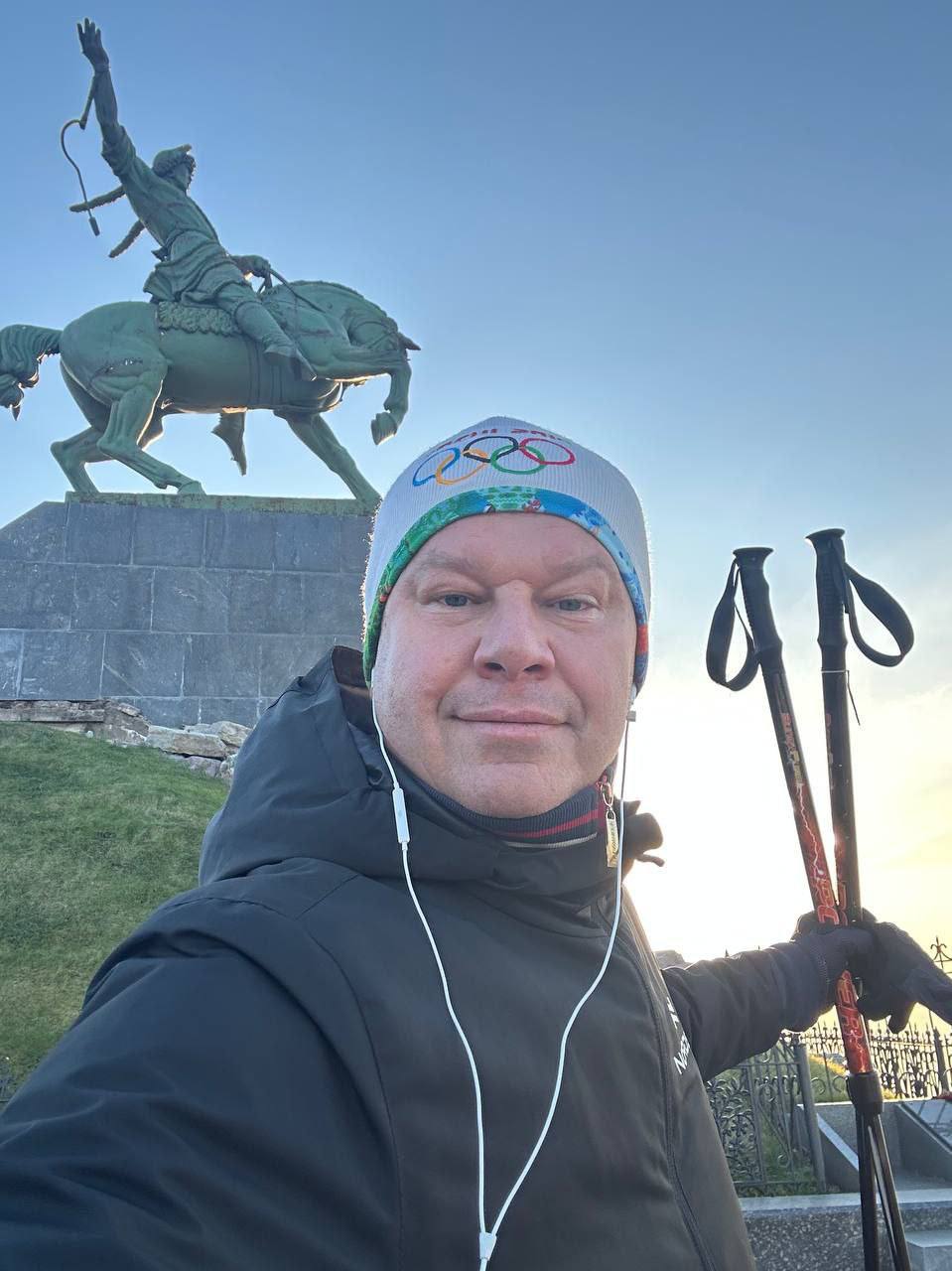 Дмитрий Губерниев начал второй день форума "Россия спортивная держава" с тренировки возле памятника Салавату Юлаеву.