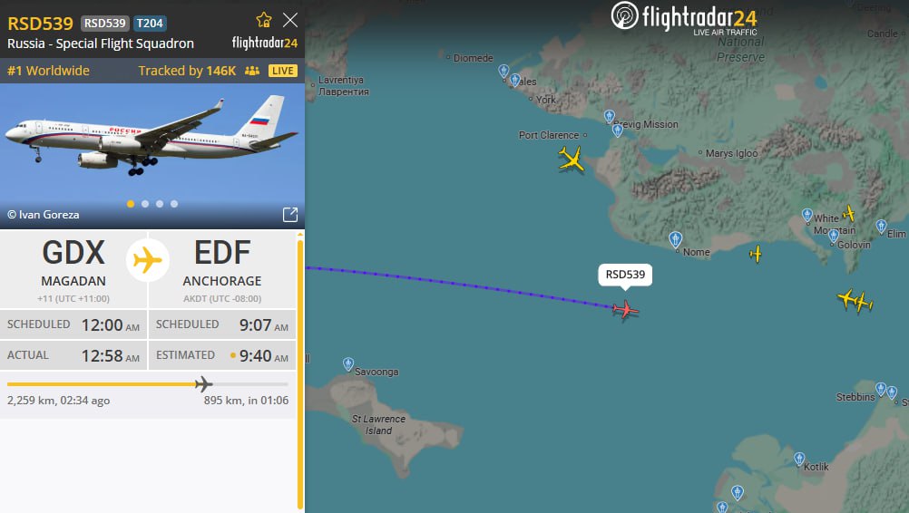 За российским Ту-214 ПУ, на котором может находиться Владимир Путин, наблюдает свыше 146 тыс. человек. Самолет вот-вот окажется над США.