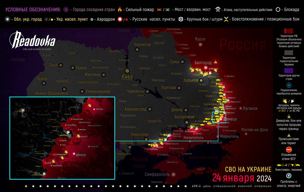 Карта военных действий и ситуация на фронтах вечером 24 января