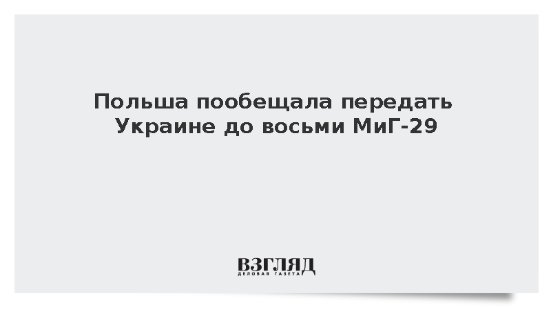 «Польша рассматривает возможность передать Украине несколько самолетов МиГ-29, которые к концу года должны быть выведены из состава [польских] военно-воздушных сил», – заявил Томчик. Он уточнил, что именно шесть-восемь истребителей могут перейти в распоряжение украинских военных.