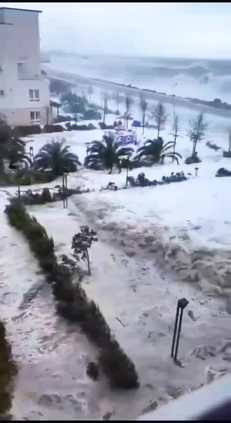 Серьезно досталось курортам Краснодарского края, особенно Адлеру. Из-за высоких волн там буквально затопило первые этажи домов, стоящих на побережье. Стоит ли говорить о том, что люди не могут выйти на улицу — это попросту опасно, ведь, помимо всего прочего, дует сильный ветер, и повсюду летают различные предметы.
