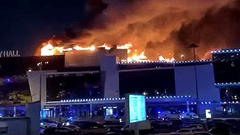 Здание концертного зала до сих пор охвачено огнём. По последним данным, площадь пожара составляет 12 900 кв. метров. В его тушении задействована авиация.