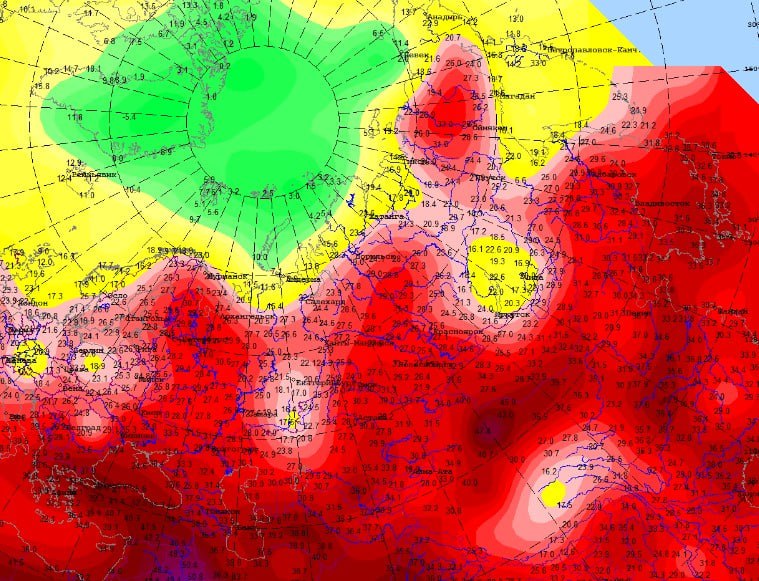 Столбики термометров в период с 30 июля по 1 августа будут зашкаливать в Крыму, Адыгее, Тыве, Калмыкии, Карелии, Кабардино-Балкарии, Северной Осетии, Ставропольском крае, Херсонской, Запорожской Ленинградской, Новосибирской, Архангельской и Ростовской областях, а также в Московском регионе.