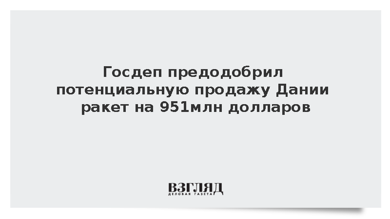 В Госдепе заявили, что продажа ракет повысит способность Дании противостоять текущим и будущим угрозам, обеспечит страну современными боеприпасами для самолетов и наземных систем противовоздушной обороны.