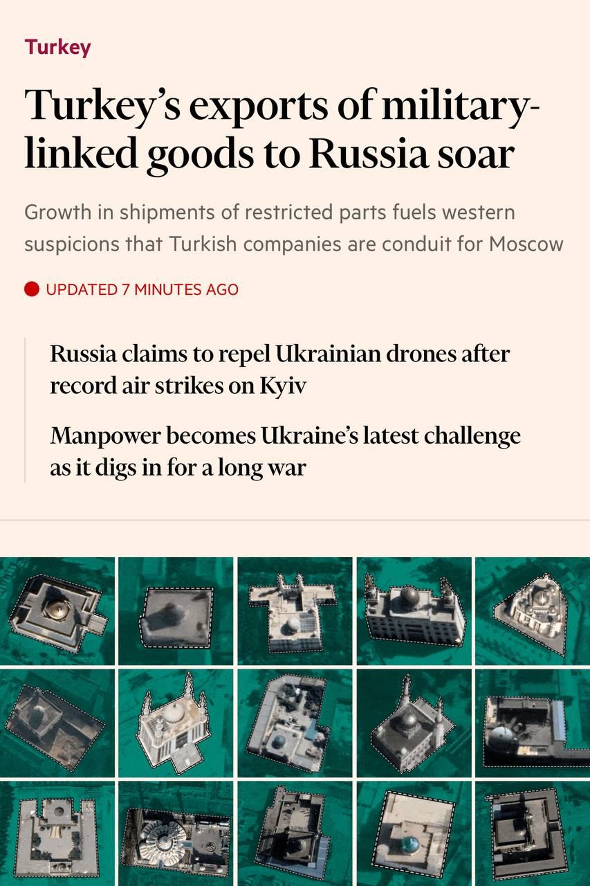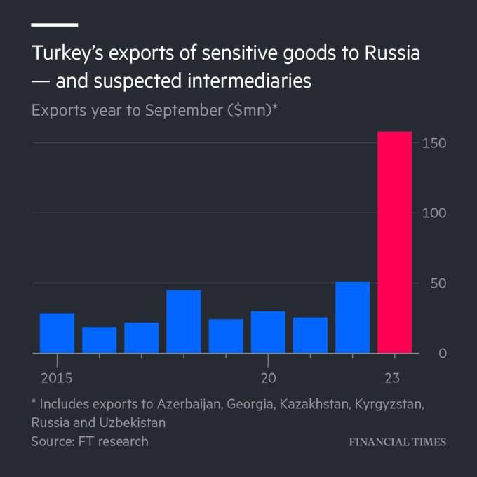 🇹🇷🇷🇺Турция в этом году нарастила экспорт товаров для военного производства в Россию – Financial Times