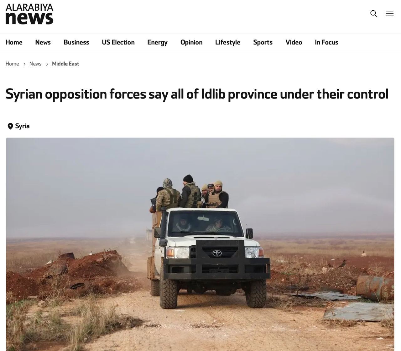 🔺Радикалы захватили провинцию Идлиб в Сирии и военный аэродром Абу аль-Духур, а также крупный город Маарат-ан-Нуман, сообщает Reuters со ссылкой на два оппозиционных источника.
