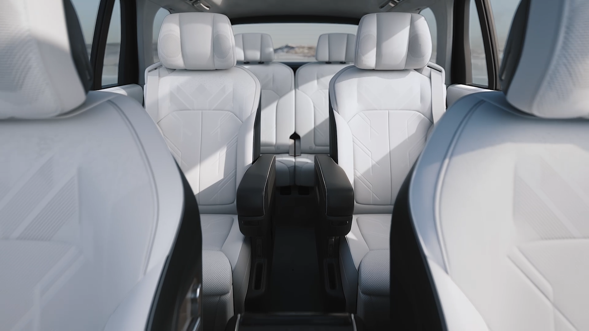 Блоки для управления регулировками передних кресел расположены на внутренней стороне дверей, под блоком управления климатической установкой установлено устройство для беспроводной зарядки смартфонов. Трёхрядный салон Zeekr 9X рассчитан на шестерых седоков (2+2+2). При этом во втором ряду установлена пара отдельных кресел с подлокотниками и оттоманками, а по центру между ними располагается отдельный дисплей.