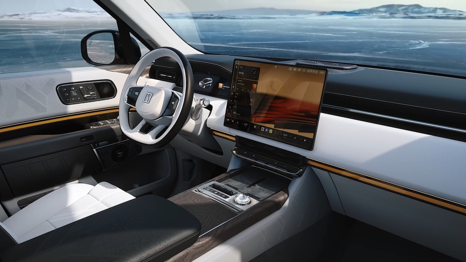 Теперь компания официально рассекретила салон Zeekr 9X. Интерьер оформлен в чёрно-белой гамме с белой прострочкой и древесными вставками. На передней панели располагается трёхспицевое рулевое колесо с усечённым ободом, оно тоже получило двухцветную отделку, которая дополнена хромированным декором. Перед водителем находится виртуальная приборка, в центре – большой горизонтальный планшет информационно-развлекательной системы.