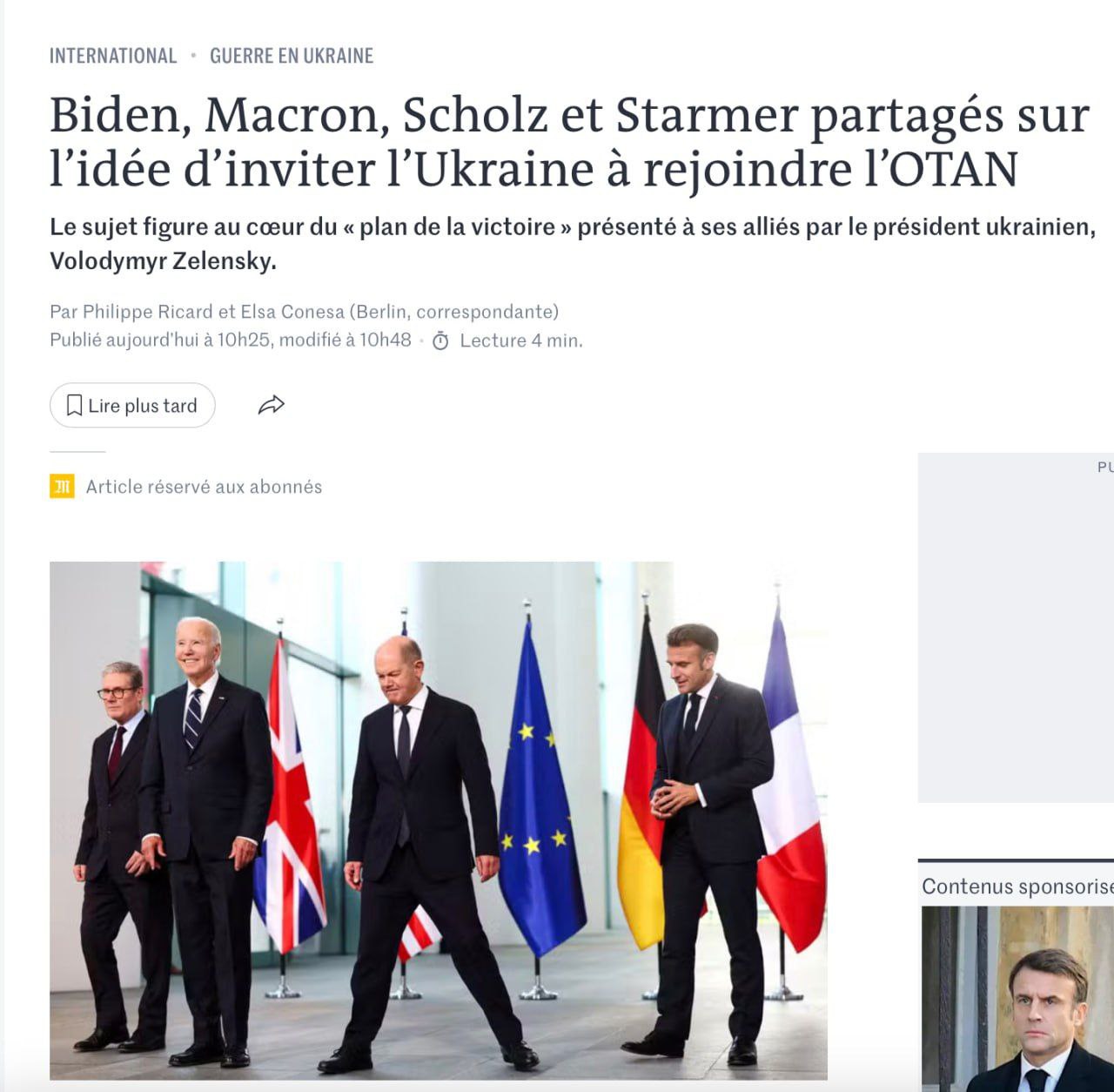 Подробности статьи Le Monde, где говорилось, что США могут изменить позицию по приглашению Украины в НАТО, если на выборах победит Камала Харрис.