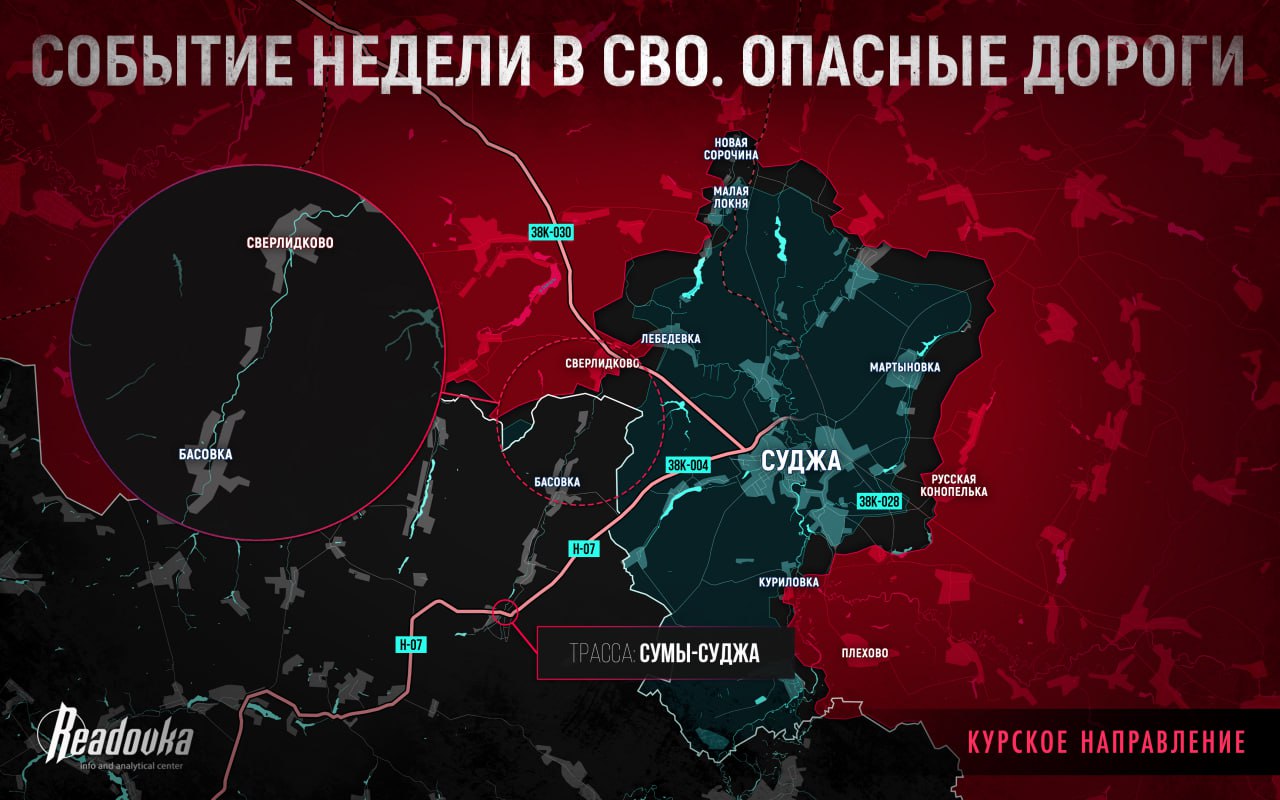 Освобождение Свердликово стало для русской армии главным тактическим успехом в Курской области за прошедшую неделю. Сейчас, когда Россия движется к мирным переговорам, освобождение курской земли может стать весомым аргументом в диалоге. Юго-западная трасса из Сумской области находится под угрозой — стоит нашим дойти до села Басовка, и дорога окажется под прицелом наших ПТРК. Еще лучше, если по ней получится бить с прямой наводки. Совсем идеальный вариант — взять трассу под физический контроль и отрезать окончательно.