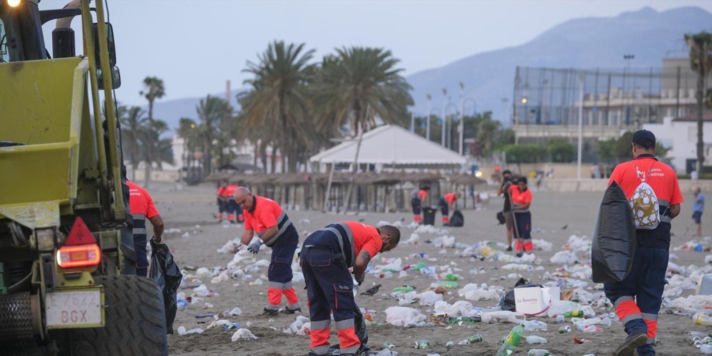 El Ayuntamiento para facilitar la recogida de residuos dispuso un refuerzo de 40 contenedores de 1.000 litros y 330 papeleras de 50 litros. La playa amaneció como un vertedero, que solo el abnegado trabajo de las patrullas de limpieza recuperó para el baño. A las diez de la mañana, la basura había sido un mal sueño.