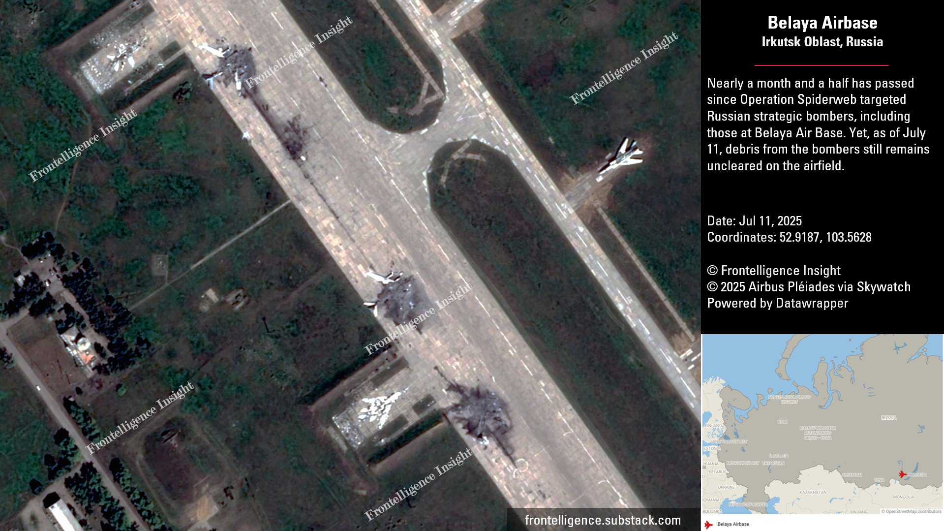 One and a half months after the successful Operation Spiderweb, which targeted and destroyed Russian strategic bombers, our latest satellite imagery shows bomber wreckage still at several airfields, with the largest concentration at Belaya. A thread with updates on airbases: