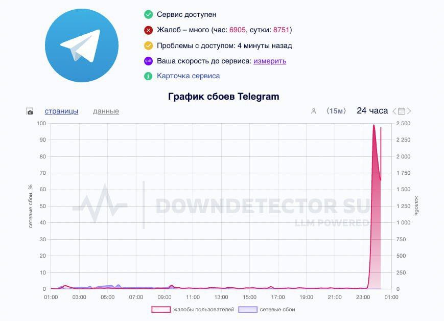 Telegram массово сбоит в России — на работу мессенджера поступают тысячи жалоб