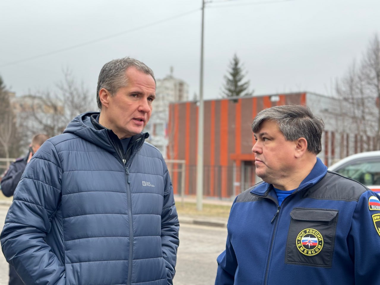 Вместе с начальником Главного регионального управления МЧС Сергеем Петровичем Потаповым и мэром Белгорода Валентином Валентиновичем Демидовым прохожу места прилетов.