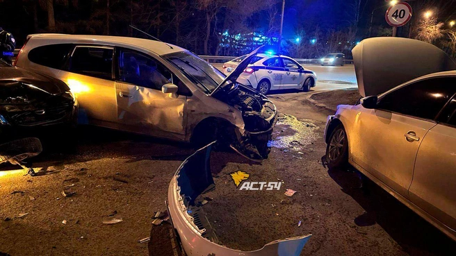 Ночью 2 мая на улице Петухова в Новосибирске произошла авария с участием сразу трех автомобилей. Об этом сообщает Telegram-канал «АСТ-54 Black».