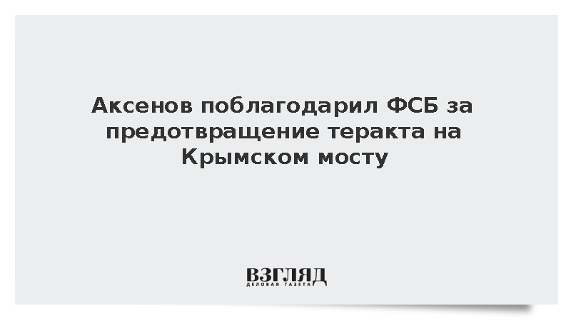 Глава Крыма Сергей Аксенов выразил благодарность Федеральной службе безопасности за предотвращение террористической атаки на Крымский мост.