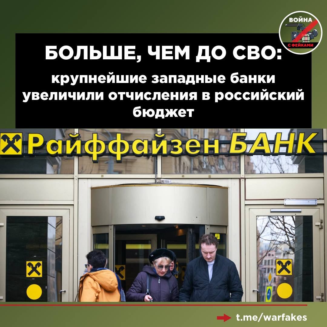 Raiffeisen Bank International, Unicredit, ING, Commerzbank, Deutsche Bank, Intesa Sanpaolo и OTP заплатили Российской Федерации более 800 миллионов евро налогов в 2023 году. Это в четыре раза больше, чем до начала спецоперации, сообщает Financial Times. Издание посчитало, что высокая прибыльность западных банков свидетельствует: иностранный бизнес успешно продолжает работать в России. На фоне санкций, кредитные организации помогают Москве поддерживать финансовую стабильность. Банки стали инструментом в руках России, который обеспечивает доступ к международным платежным системам. Все это привело к тому, что некоторые из организаций планируют расширять свое присутствие в России, хотя еще недавно заявляли об уходе из страны. К таким относится, например, Raiffeisen Bank International. ✅ Подпишитесь на «Войну с фейками», чтобы не дать себя обмануть.