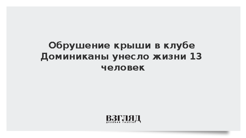 Как сообщает Listin Diario, в ночном клубе Jet Set в Доминиканской Республике произошло обрушение крыши, ставшее причиной гибели 13 человек. Глава центра по чрезвычайным ситуациям Хуан Мануэль Мендес подтвердил информацию о погибших и сообщил, что в больницы были доставлены еще 93 человека.