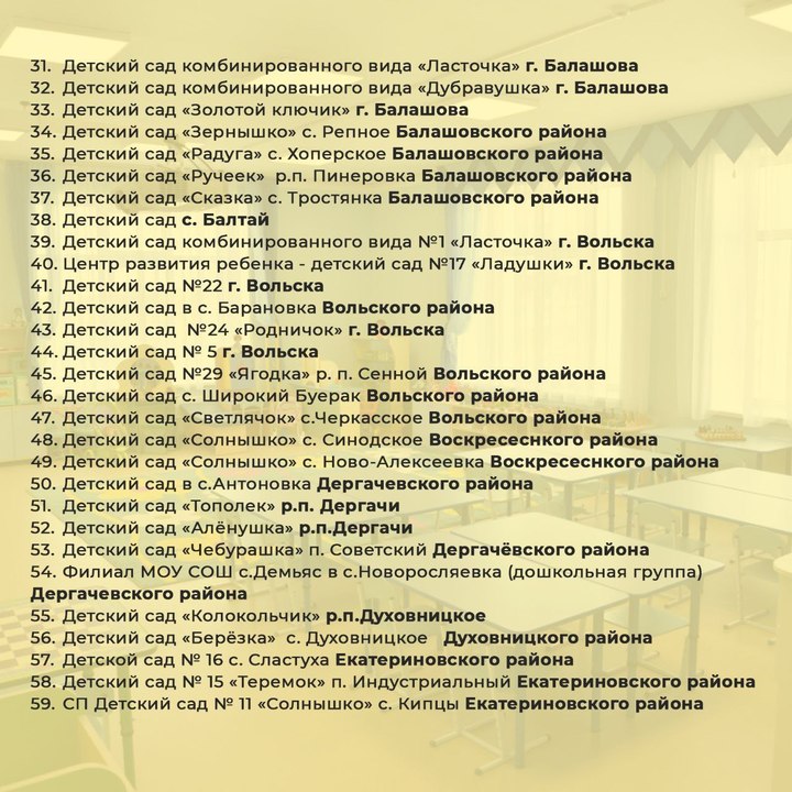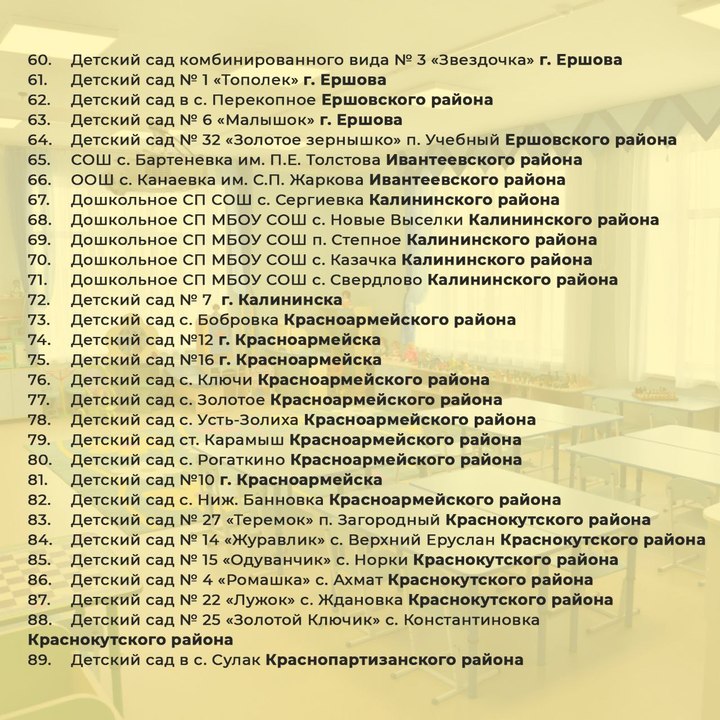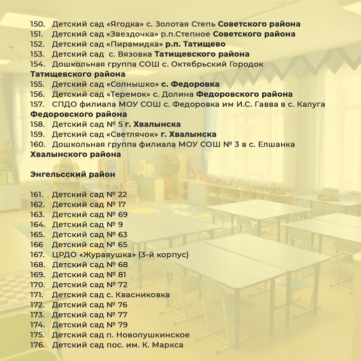 "В этом году в рамках региональной программы отремонтируем еще 201 детский сад", - сообщается в телеграм-канале "ПУЛ 64".