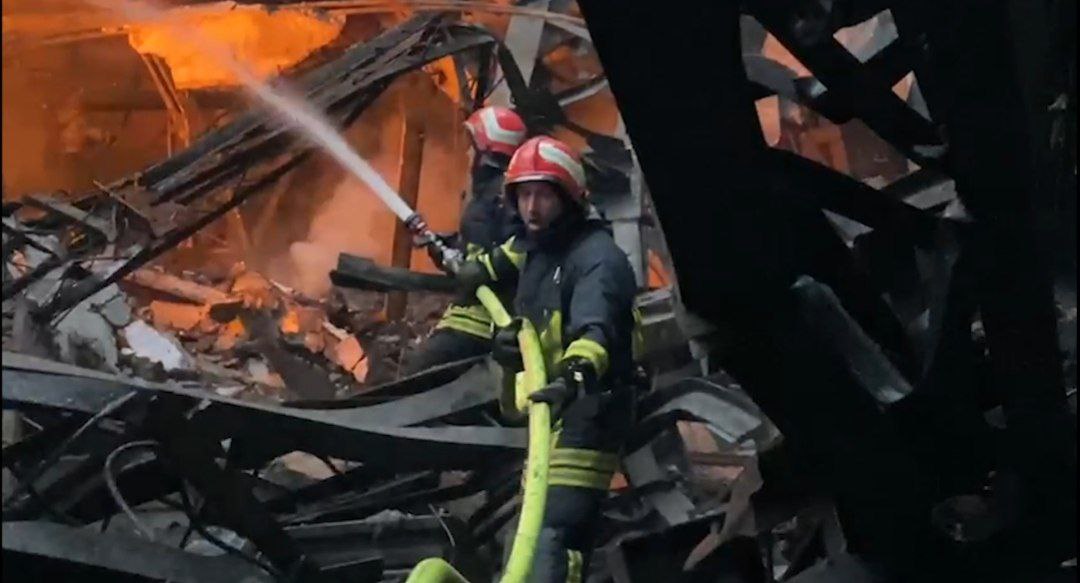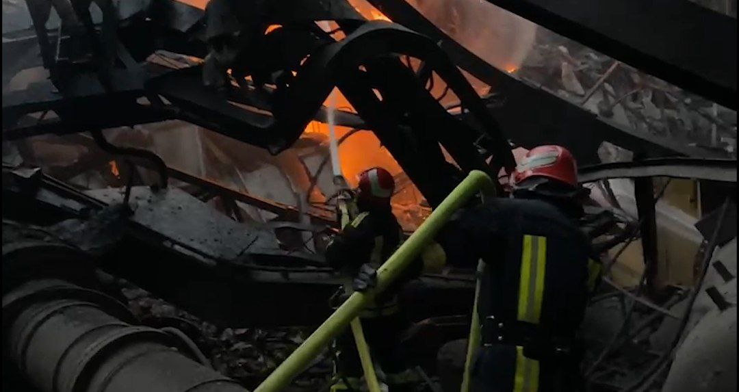 Пожар на одном из объектов энергетики Украины после ночного ракетного удара.