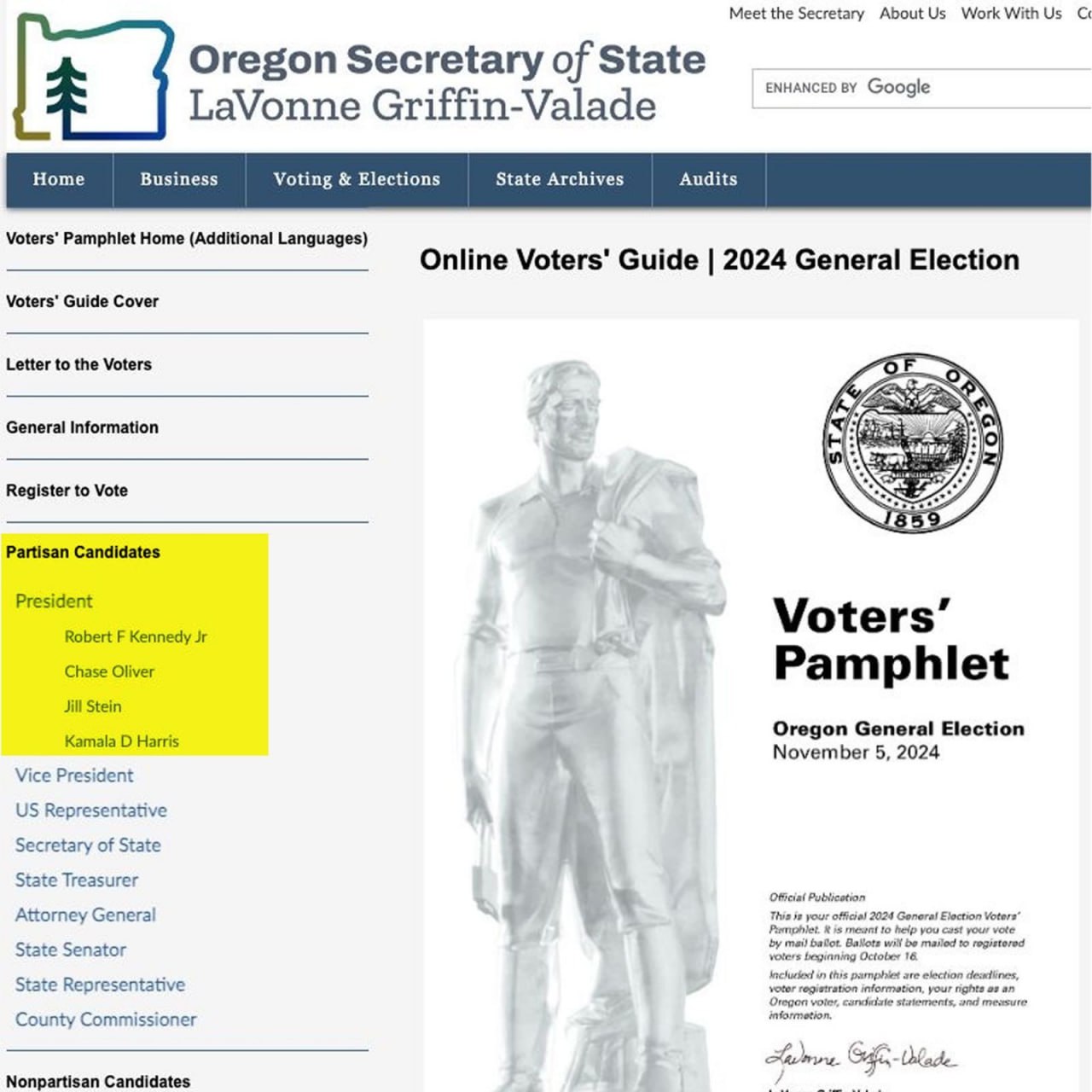 🖥️ Трампа не внесли в бюллетень для избирателей, напечатанном в штате Орегон. Он также не указан в списке кандидатов в президенты на веб-сайте правительства штата.